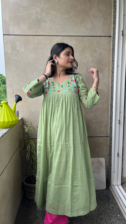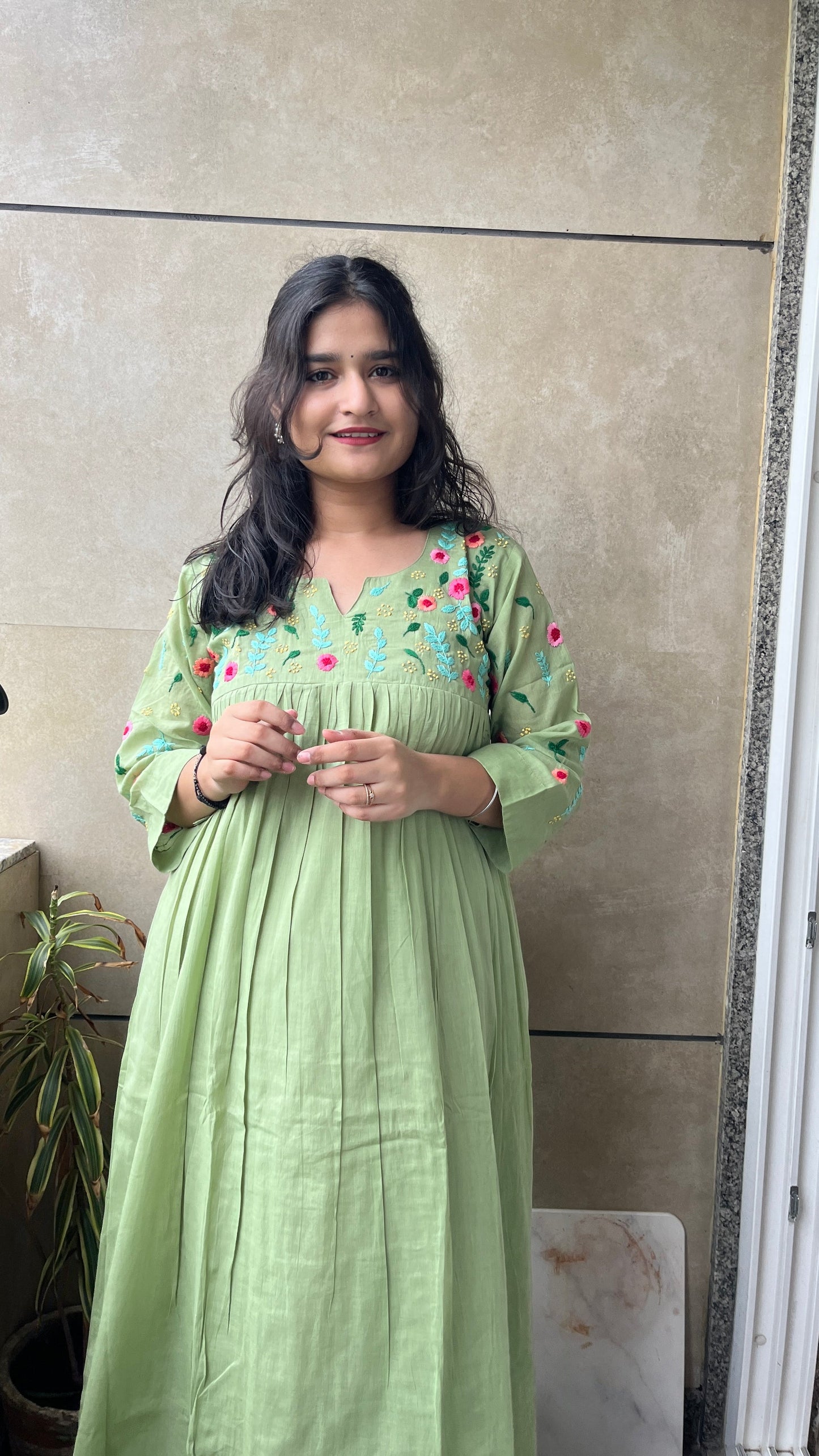 The mul cotton dress is soft, breathable, and features beautiful hand embroidery πΈ. Fully lined for comfort and opacity, itβs perfect for casual or semi-formal occasions π. Lightweight and airy, itβs ideal for warm weather π.